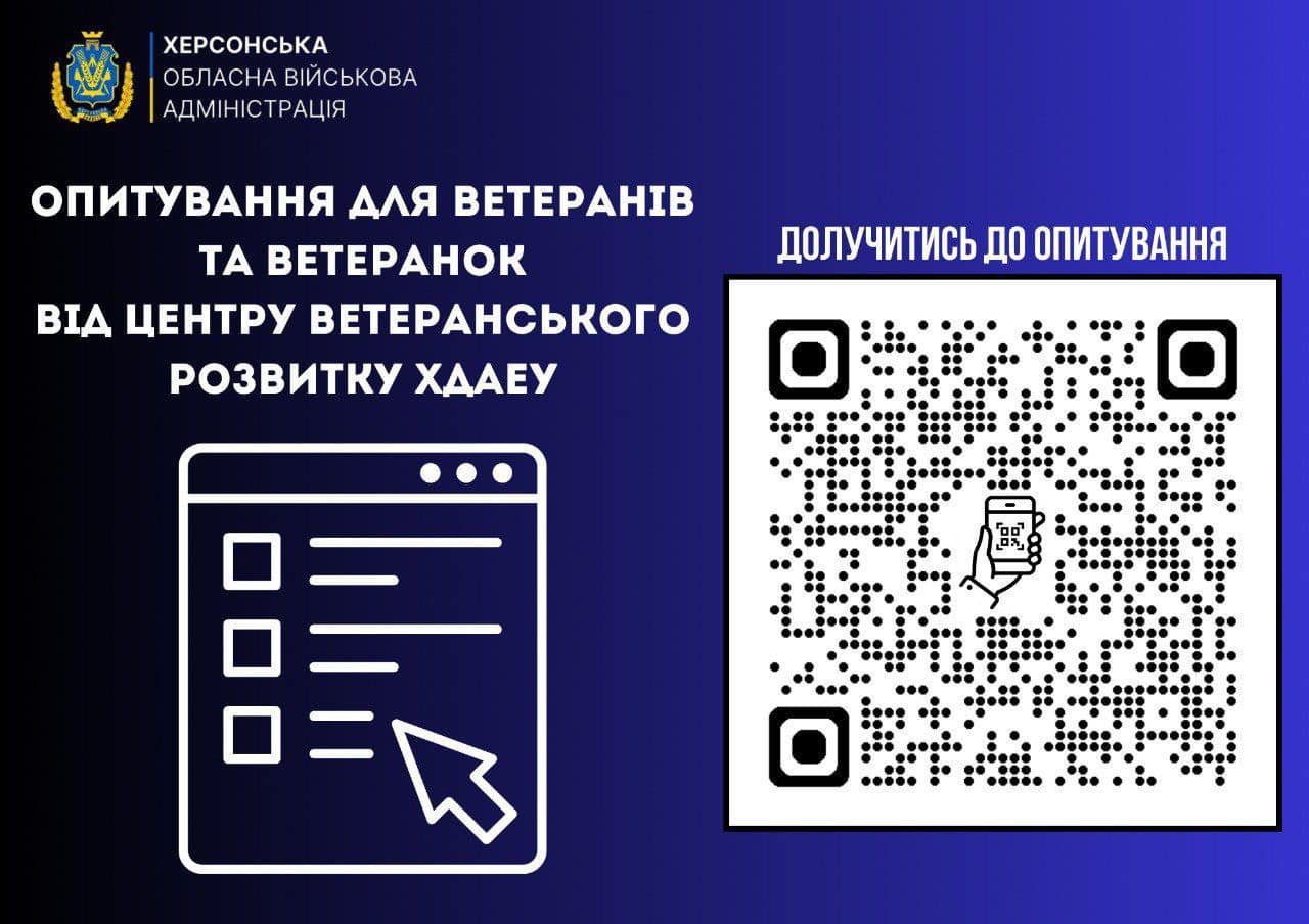 НОВИНИ 14 листопада 2024 ОПИТУВАННЯ ДЛЯ ВЕТЕРАНІВ ТА ВЕТЕРАНОК ВІД ЦЕНТРУ ВЕТЕРАНСЬКОГО РОЗВИТКУ ХДАЕУ Детальніше...