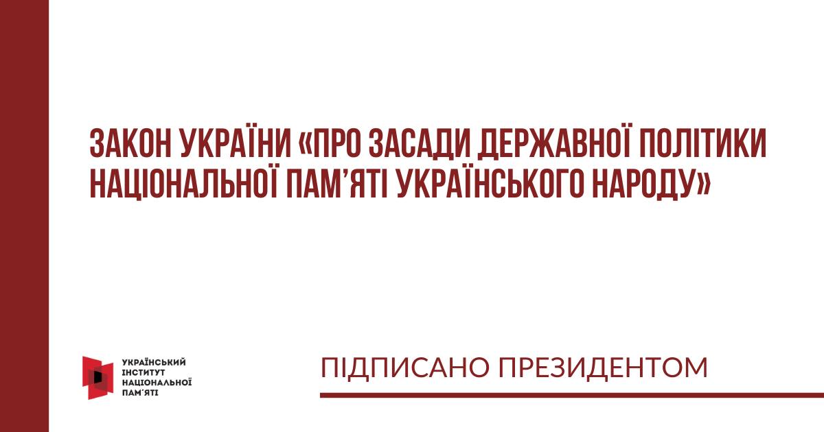 НОВИНИ 02 вересня 2025 ПРЕЗИДЕНТ УКРАЇНИ ПІДПИСАВ ЗАКОН УКРАЇНИ "ПРО ЗАСАДИ ДЕРЖАВНОЇ ПОЛІТИКИ НАЦІОНАЛЬНОЇ ПАМ'ЯТІ УКРАЇНСЬКОГО НАРОДУ" Детальніше...