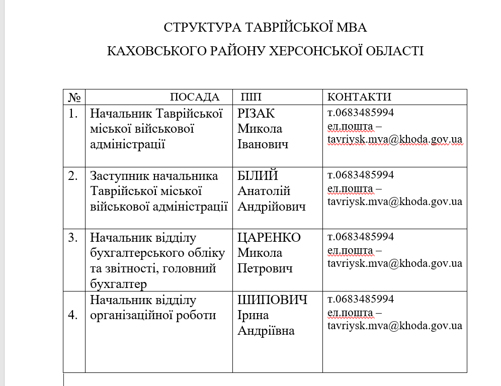 виконавчого комітету Таврійської міської ради