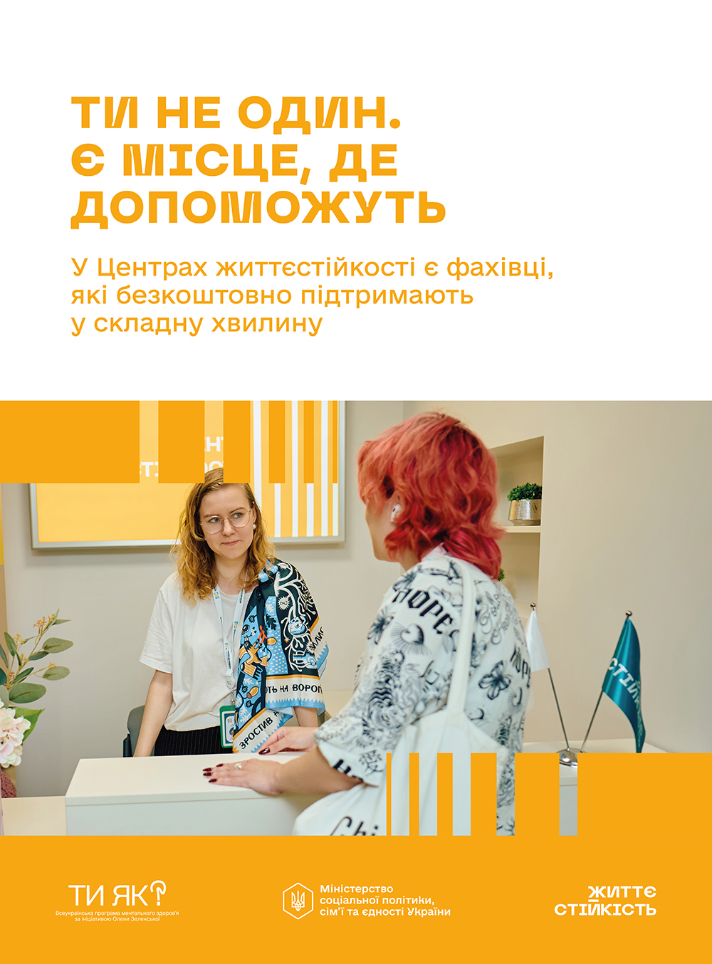 Міністерство культури України у співпраці з Міністерством соціальної політики, сім’ї та єдності України підготували інформаційну кампанію щодо діяльності та функціонування центрів життєстійкості. Метою кампанії є підвищення обізнаності населення про можливість безоплатного та безбар'єрного отримання психосоціальної підтримки, а також